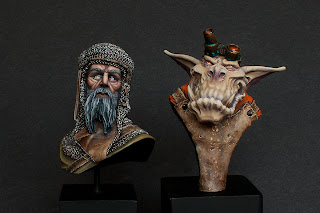 Like you can see there is still lots to do, but I guess I'm going into the right direction. Orc bust is more or less ready, just few touch ups left to be done (teeth for example). Knight is a bit less advanced, more needs to be done, but I'm almost happy with the face, so rest should be easy. I might repaint his tunic though, as I'm still not totally convinced with the colour here.